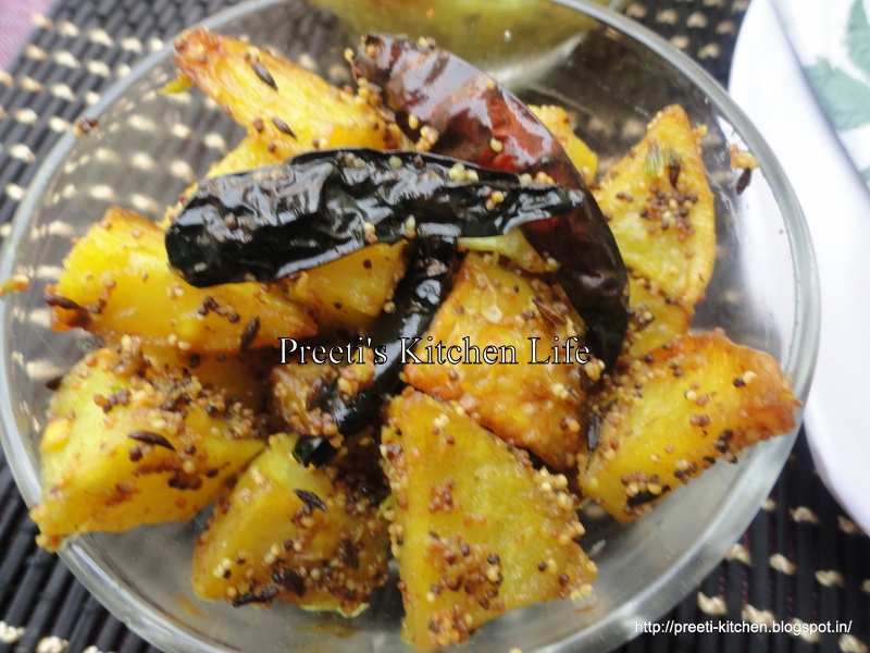 Potatoes in dice form and deep fry it. Now roast the poppy seeds in pan and