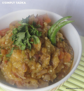 mashed  and spicy recipe with vegetable. I used brinjal or eggplant or baingan to