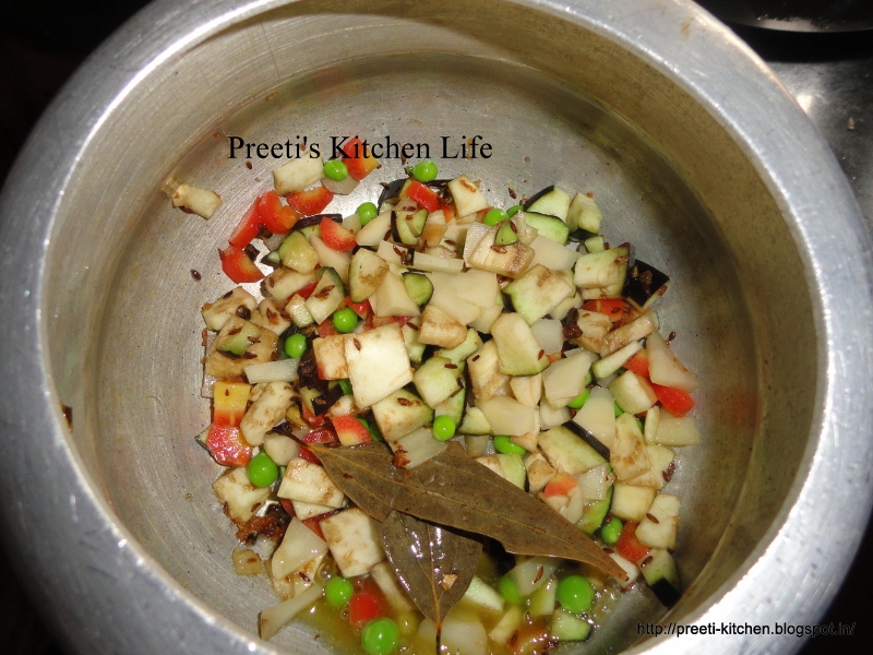 Vegetables (peas, carrots, brinjal and potato), Fine chopped