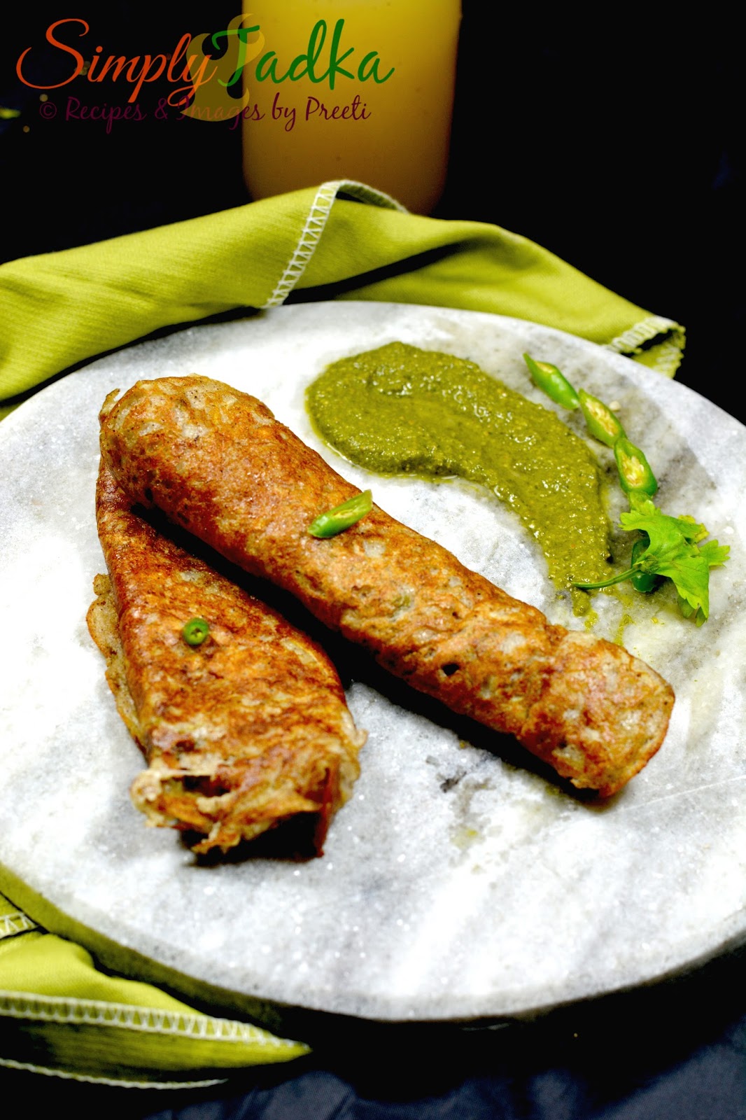 buckwheat gourd pancakes with mint chutney or curd.