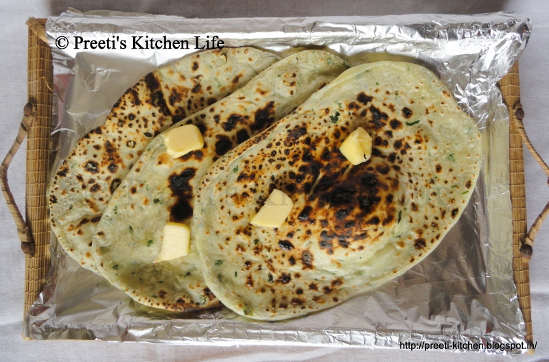 same as follow in tandoori roti on tawa. Garnish with lots of butter and green