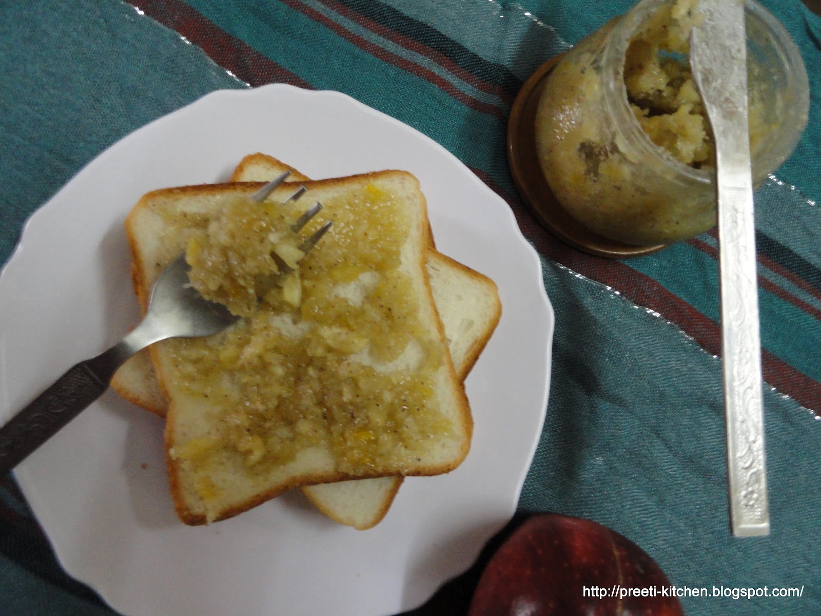 Today I post a spread recipe which you used with bread slices or with pranthas. In this recipe, we used red hard ripe apple and cinnamon powder. For chunky taste add 1 tbsp. mango puree also. To look little chunky we did not mash apple completely.