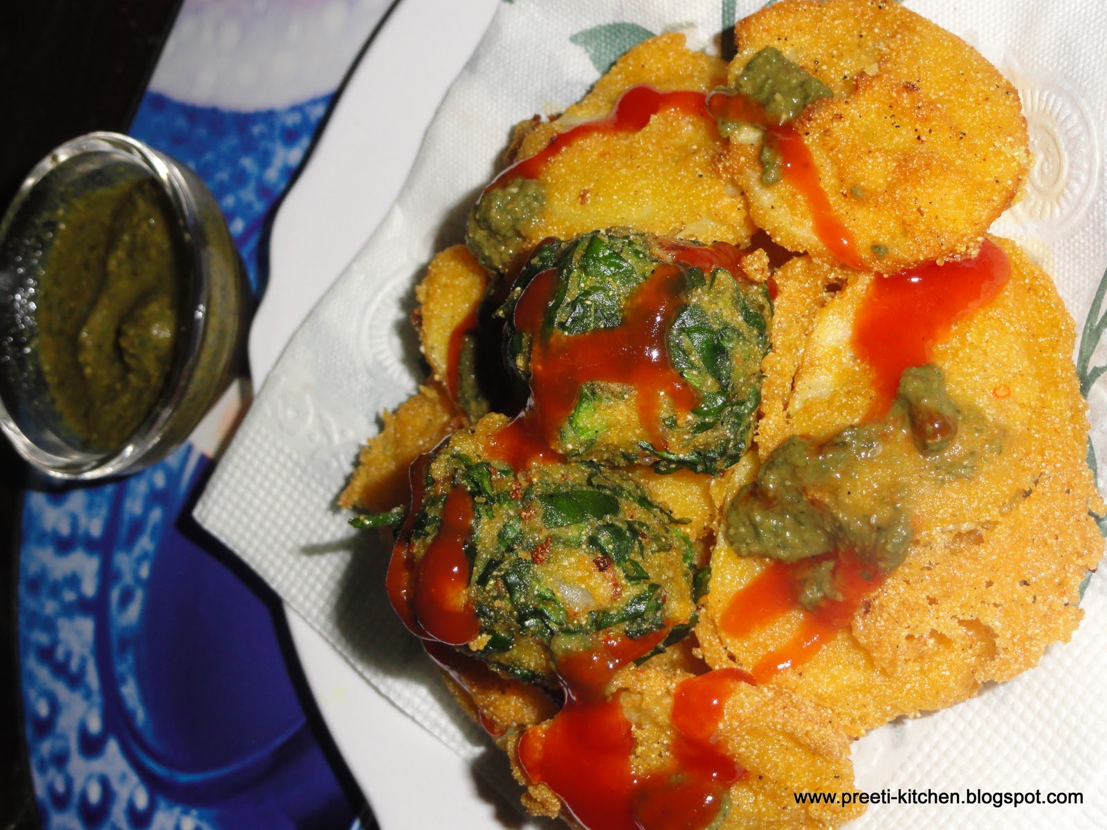 • Serve hot cornmeal potato pakoras with green chutney and tomato