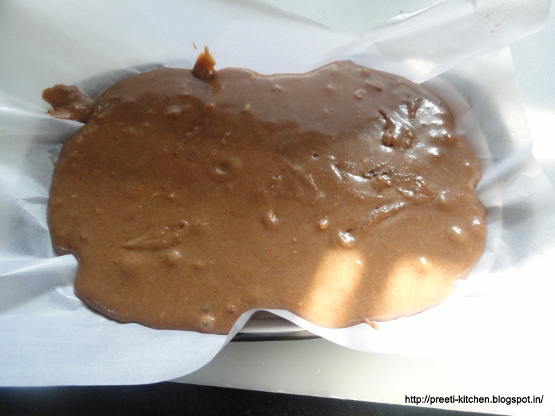 and fold it with silicon spatula. Now place the butter paper in dish and place