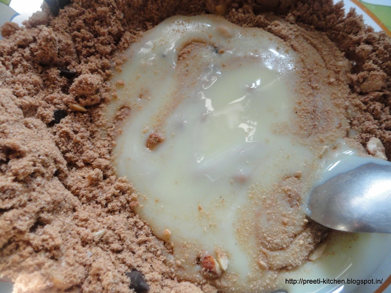 chopped roasted almonds, cashews and choco chips. Mix well.
