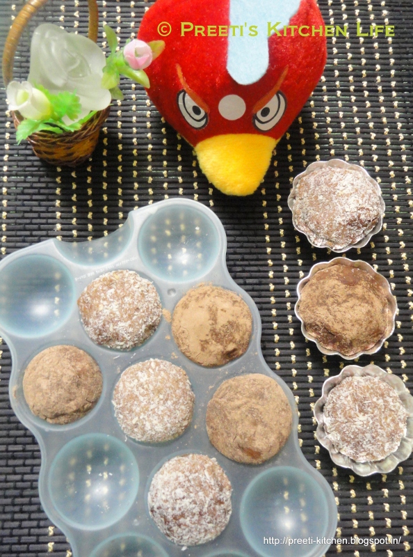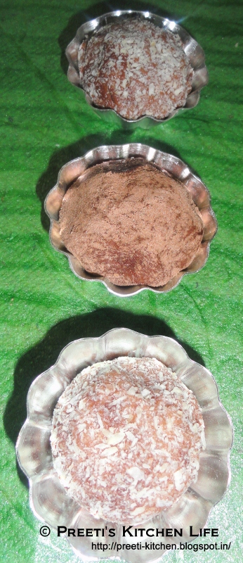 portion and give round shape. Coat with coconut powder or chocolate powder