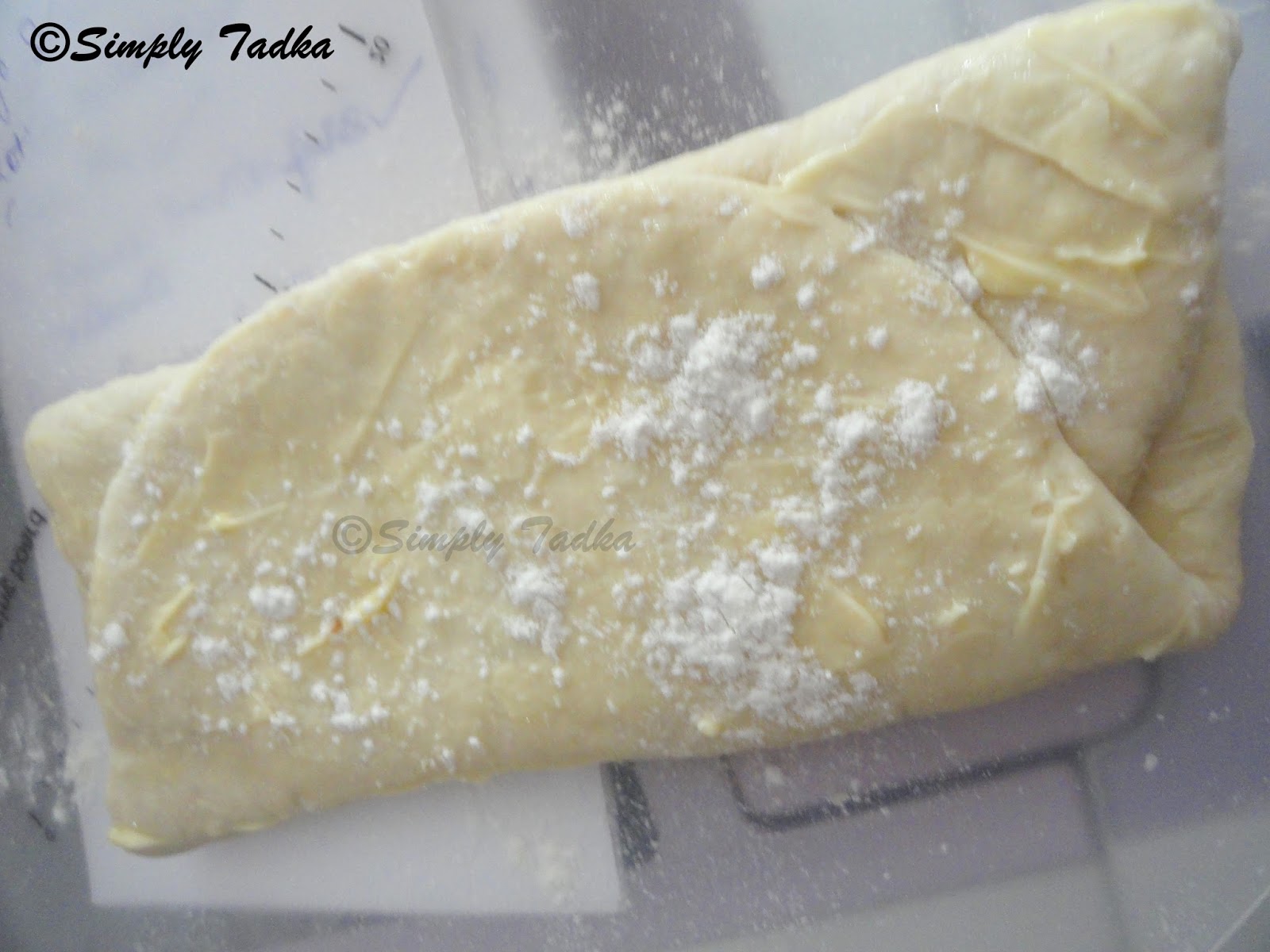 dough 1/8 inch thick. Spread the butter over the dough and sprinkle little