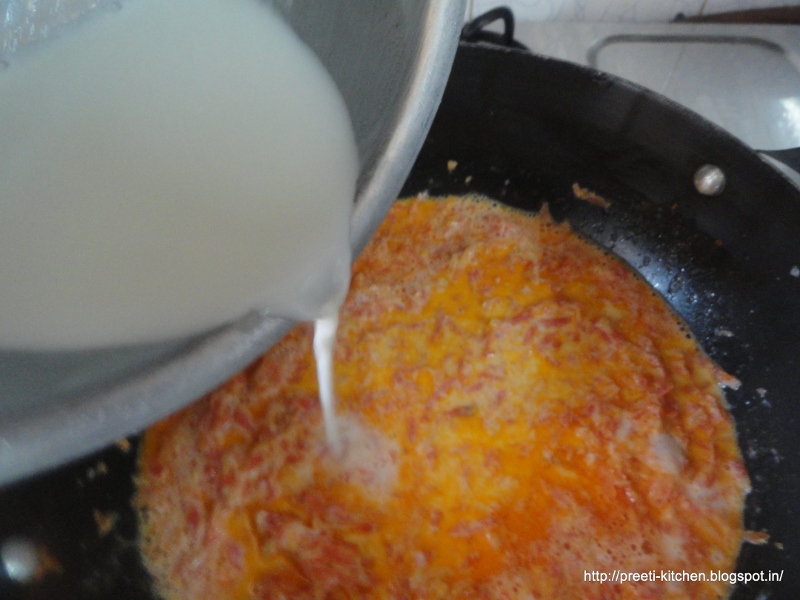 stir well for 4-5 minutes. Now add warm milk (double of carrots) approx. in