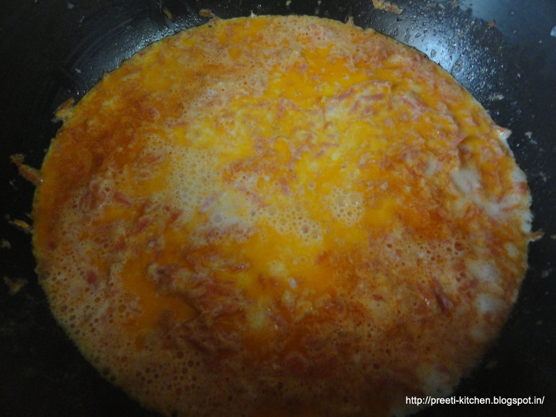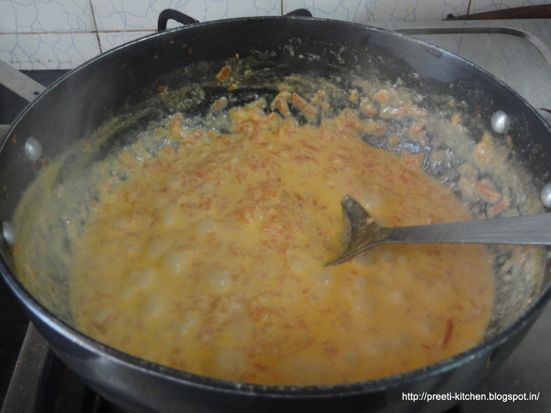 stir well for 4-5 minutes. Now add warm milk (double of carrots) approx. in