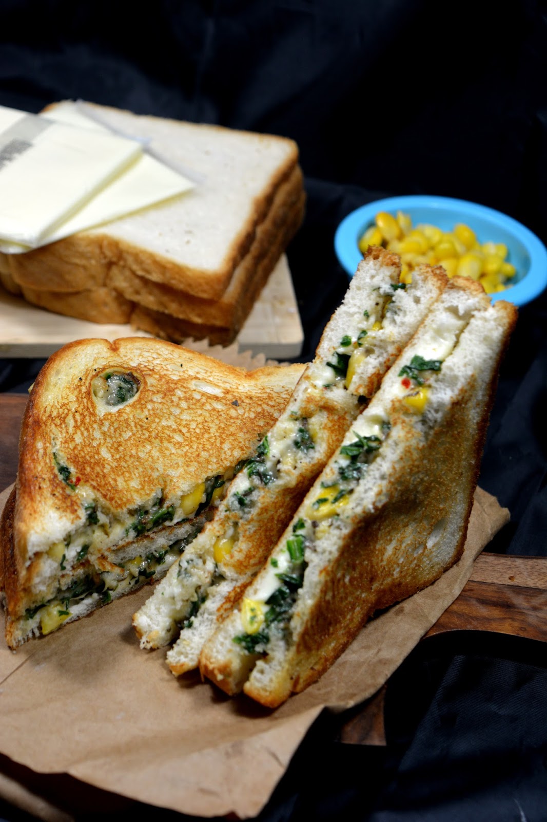 sandwiches, bread recipe, simplytadka, spinach recipes, corn recipe, cheese