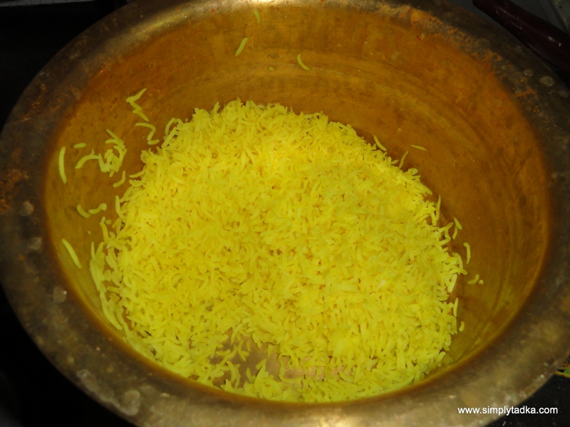 Cook the rice with the turmeric powder, salt and three