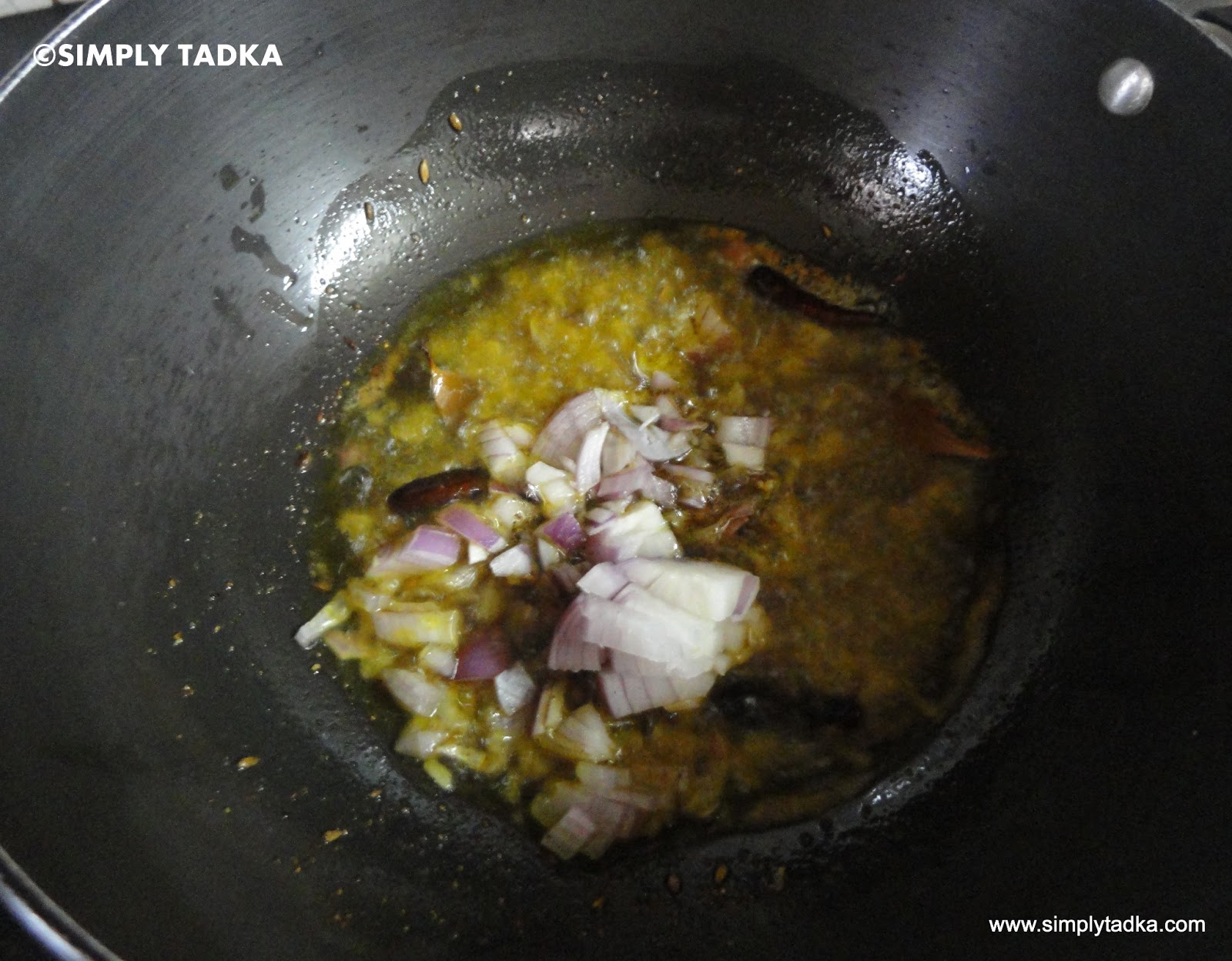 tempering of bay leaves, red chili and panch phoron. Panch phoron is very
