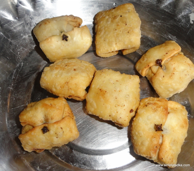 recipe, stuffed puri with khoya and chopped nuts mixture then soak into sugar