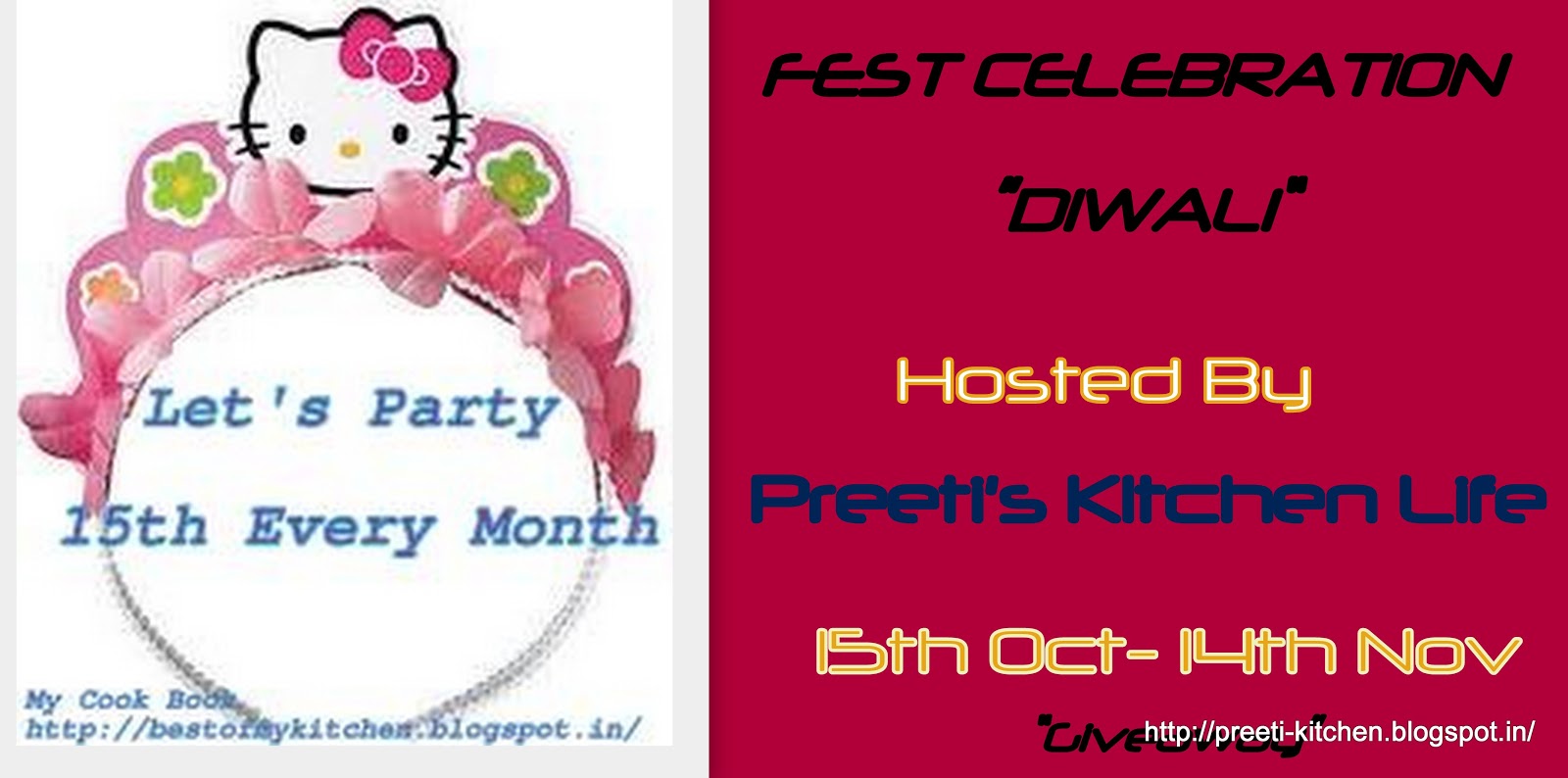 • The post must to be linked with Let’s Party- Fest Celebration Event hosted by Preeti’s Kitchen Life  and announced by Surabhi’s My Cookbook.