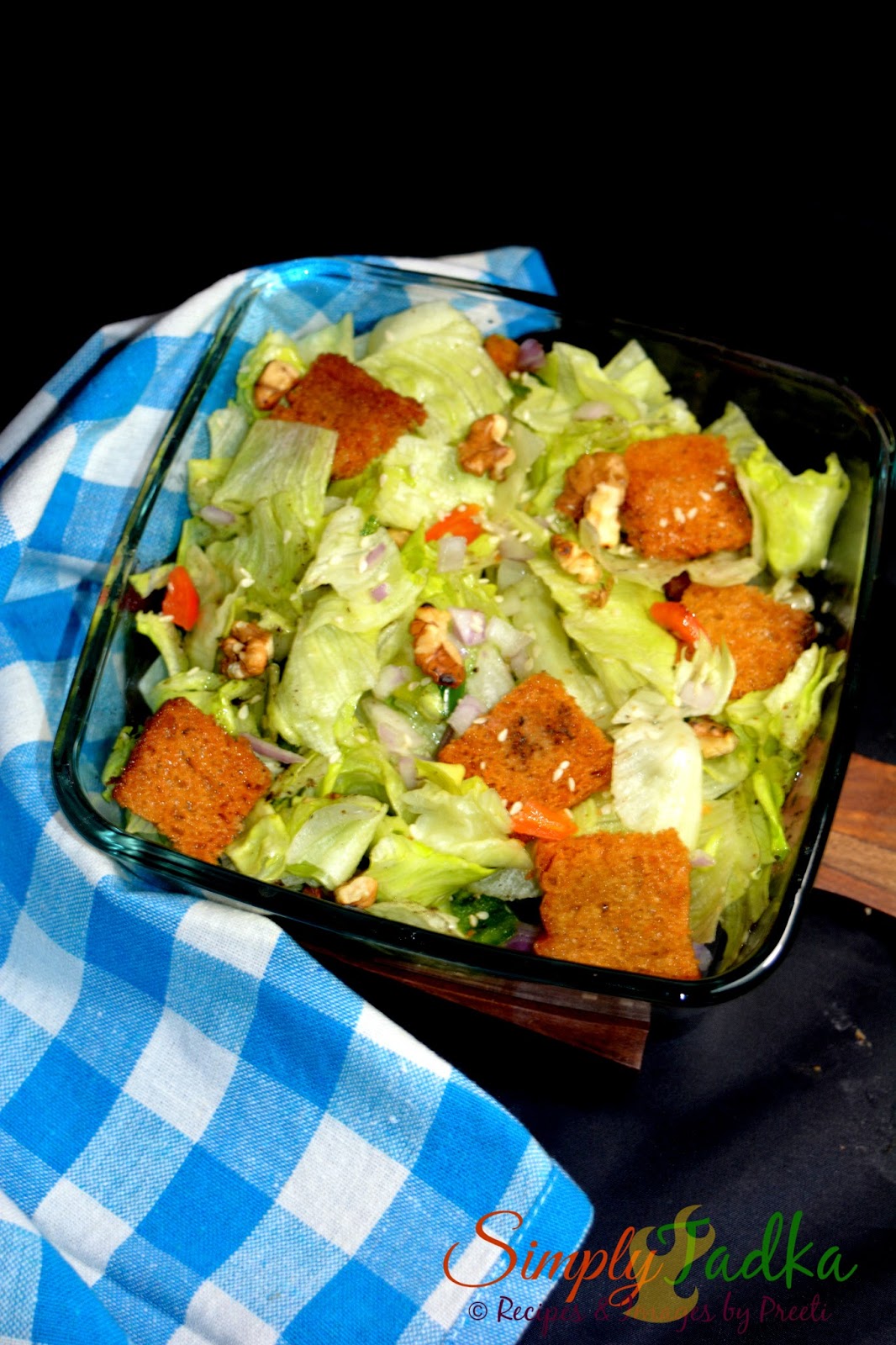 very simple and healthy salad recipe i.e. Lettuce Salad with Croutons which