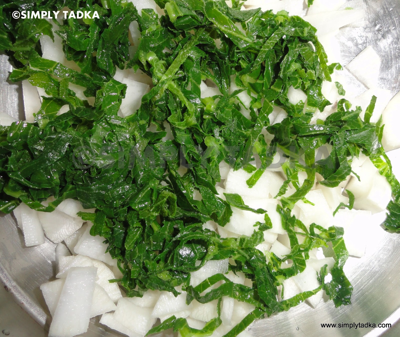 Wash and chop the radish leaves too. Boil the leaves in water with little salt