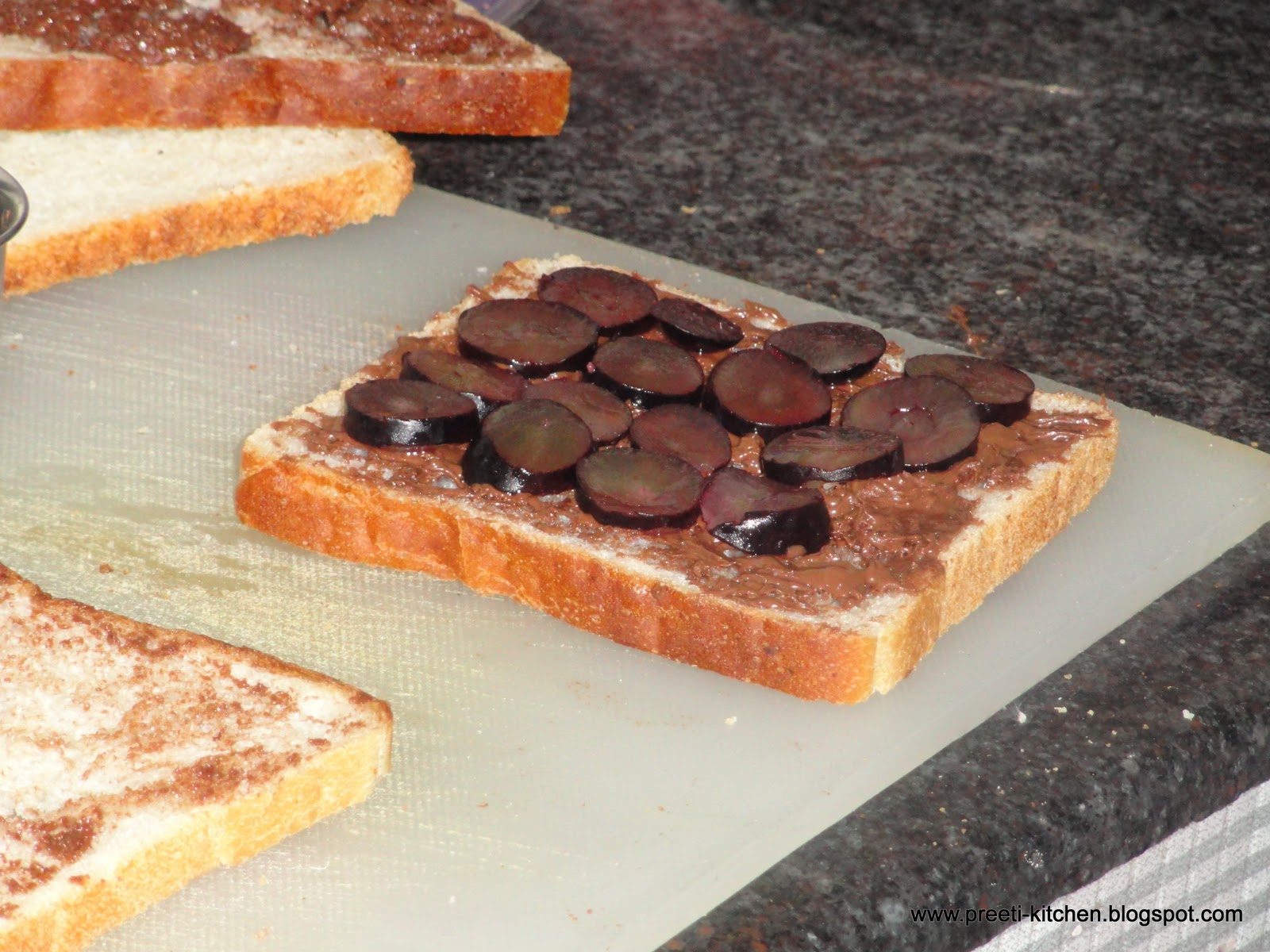 - Sprinkle few chopped grapes over sandwich.