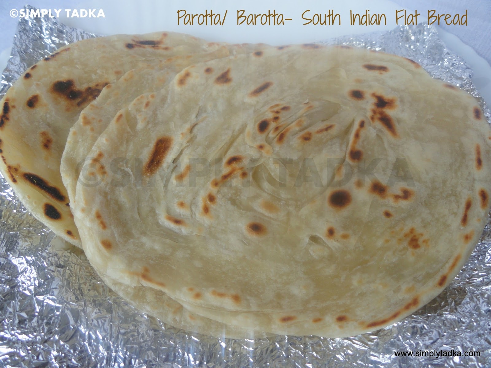 main course with curries. This is a variant of the North Indian Lacha Paratha. Parottas are usually