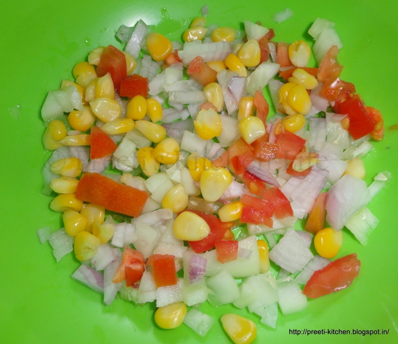 2/3 Cup Onion, Cucumber, Tomato and Corn, chopped