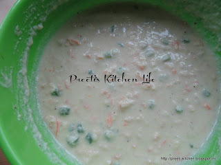 Now combine oil, curd, beans, carrots and baking soda and mix it