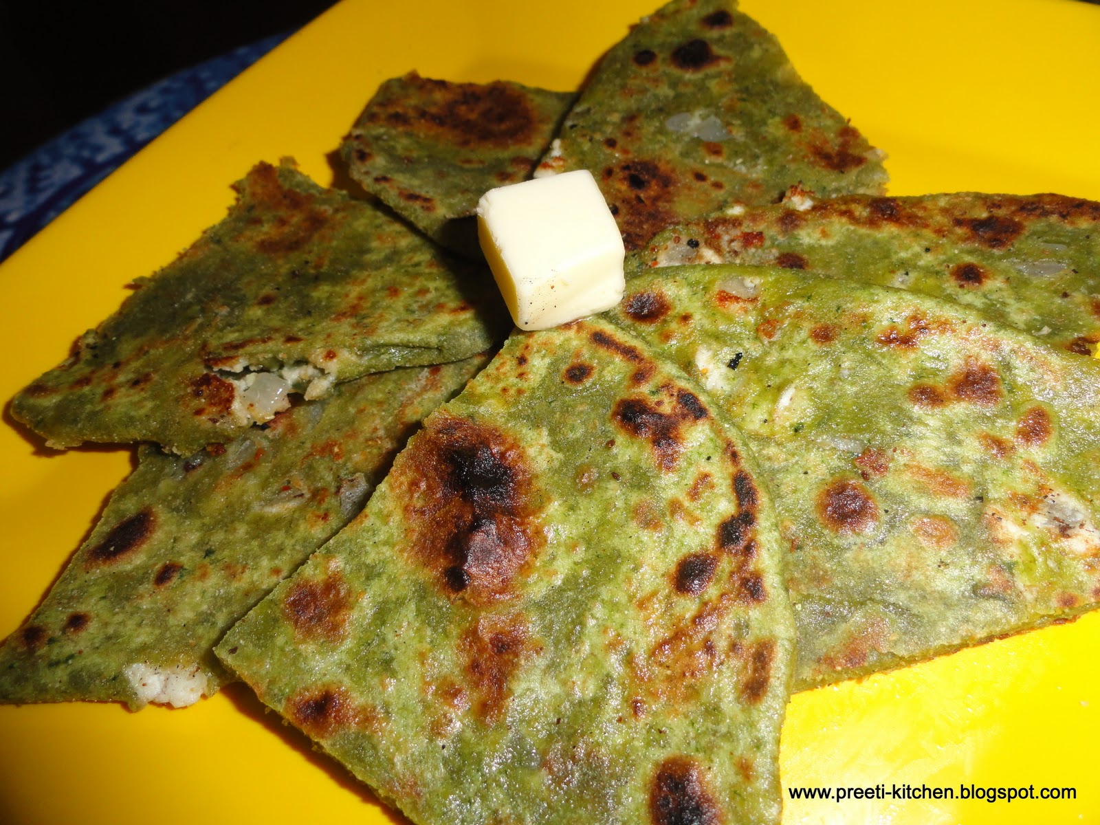delicious and healthy parathas and love the addition of spinach puree to make the dough.