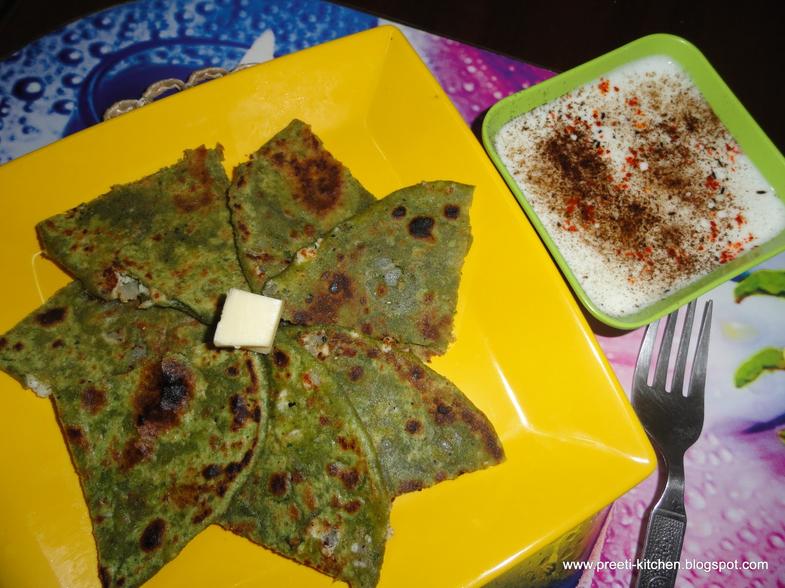 delicious and healthy parathas and love the addition of spinach puree to make the dough.