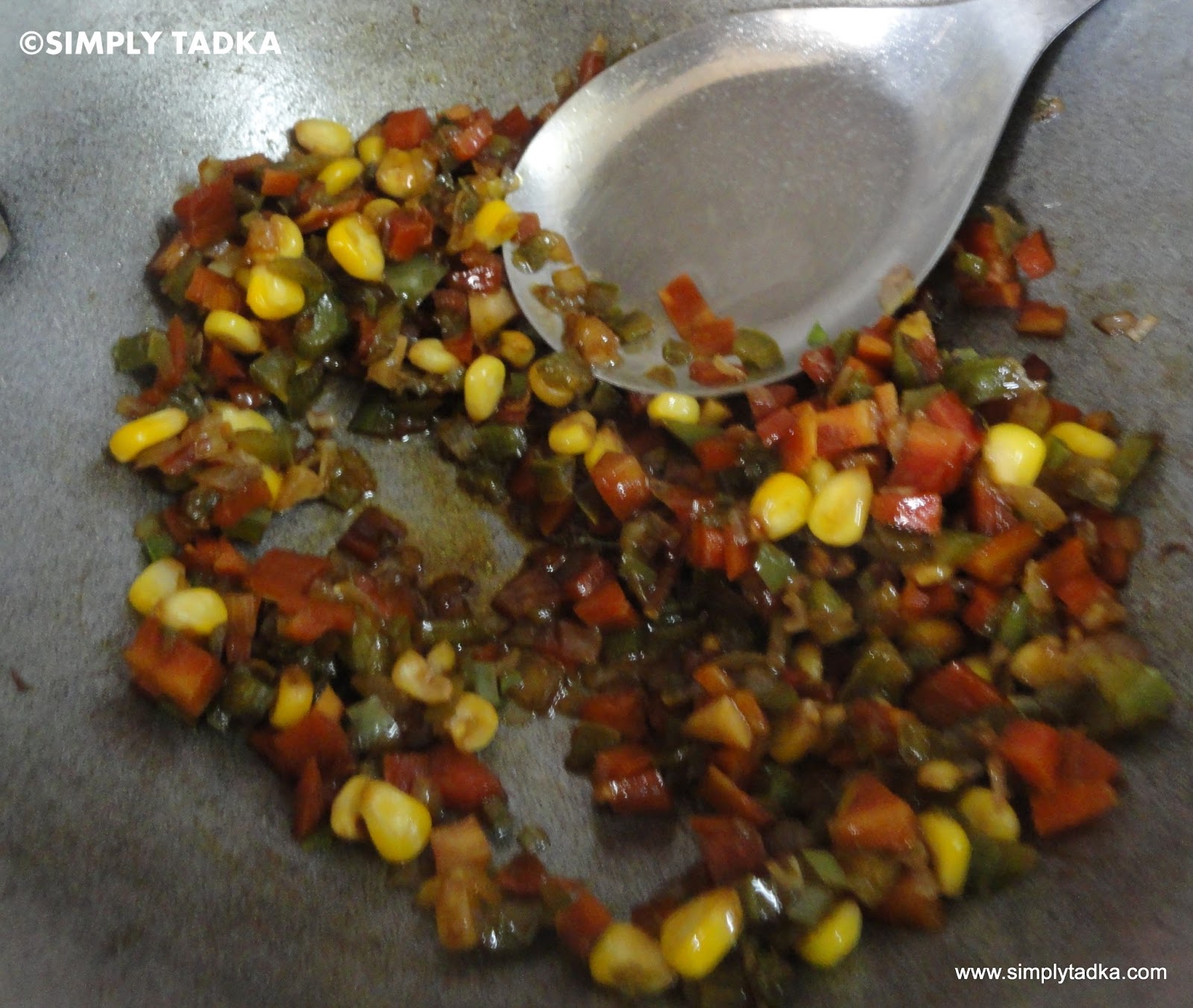 till to translucent. Add chopped bell pepper, corns, carrots and cook till to