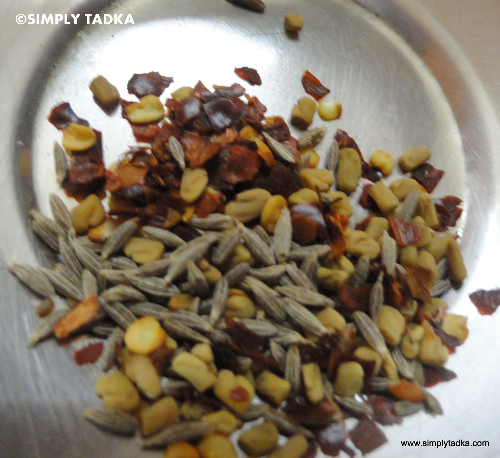 Heat the oil in pan and add asafoetida, cumin, fenugreek
